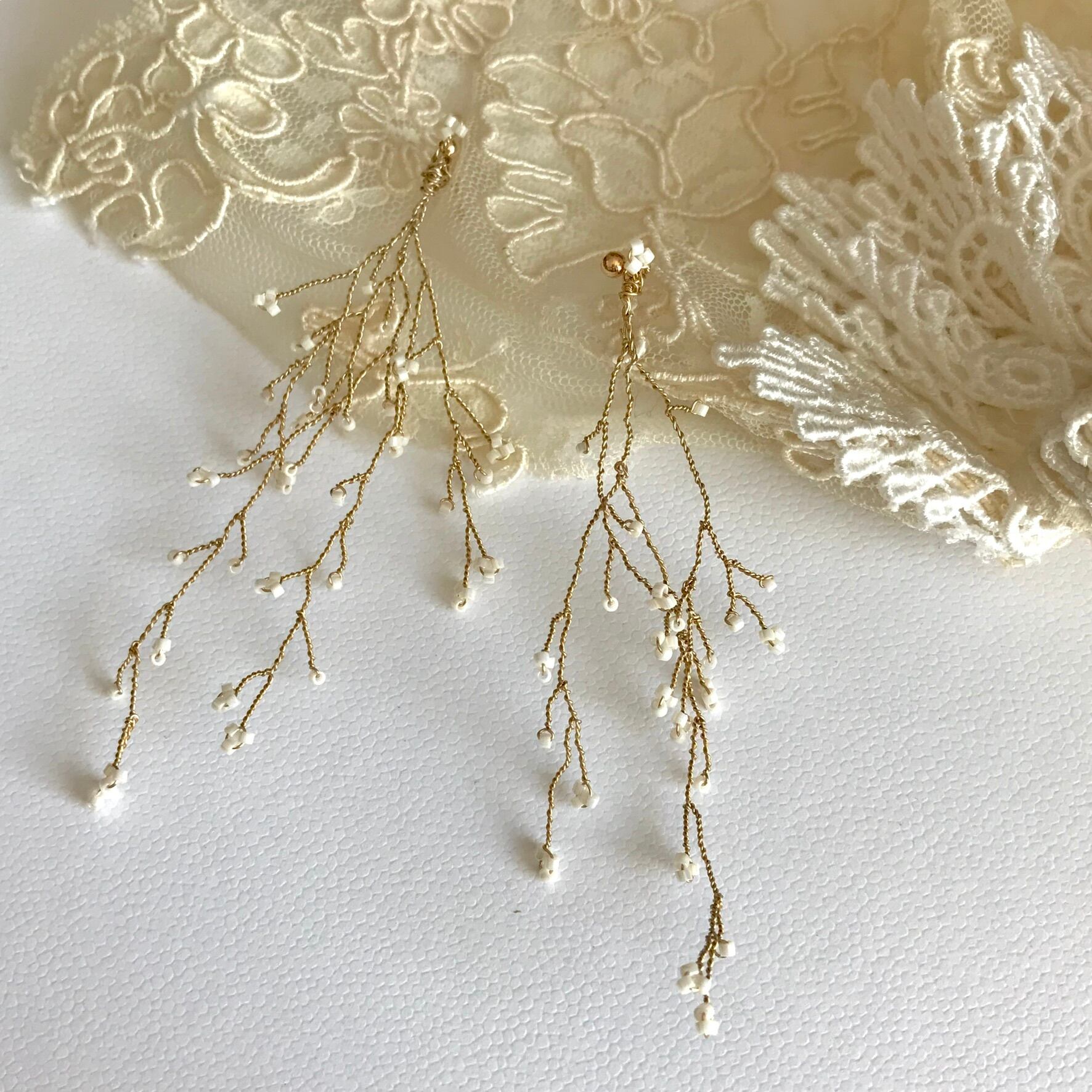 小枝、かすみ草をイメージしたピアスです♡