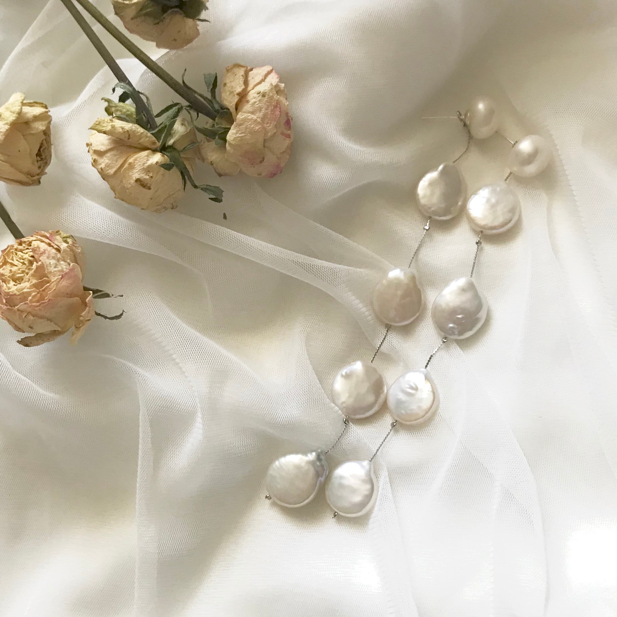 淡水パールを使ったロングピアス♡