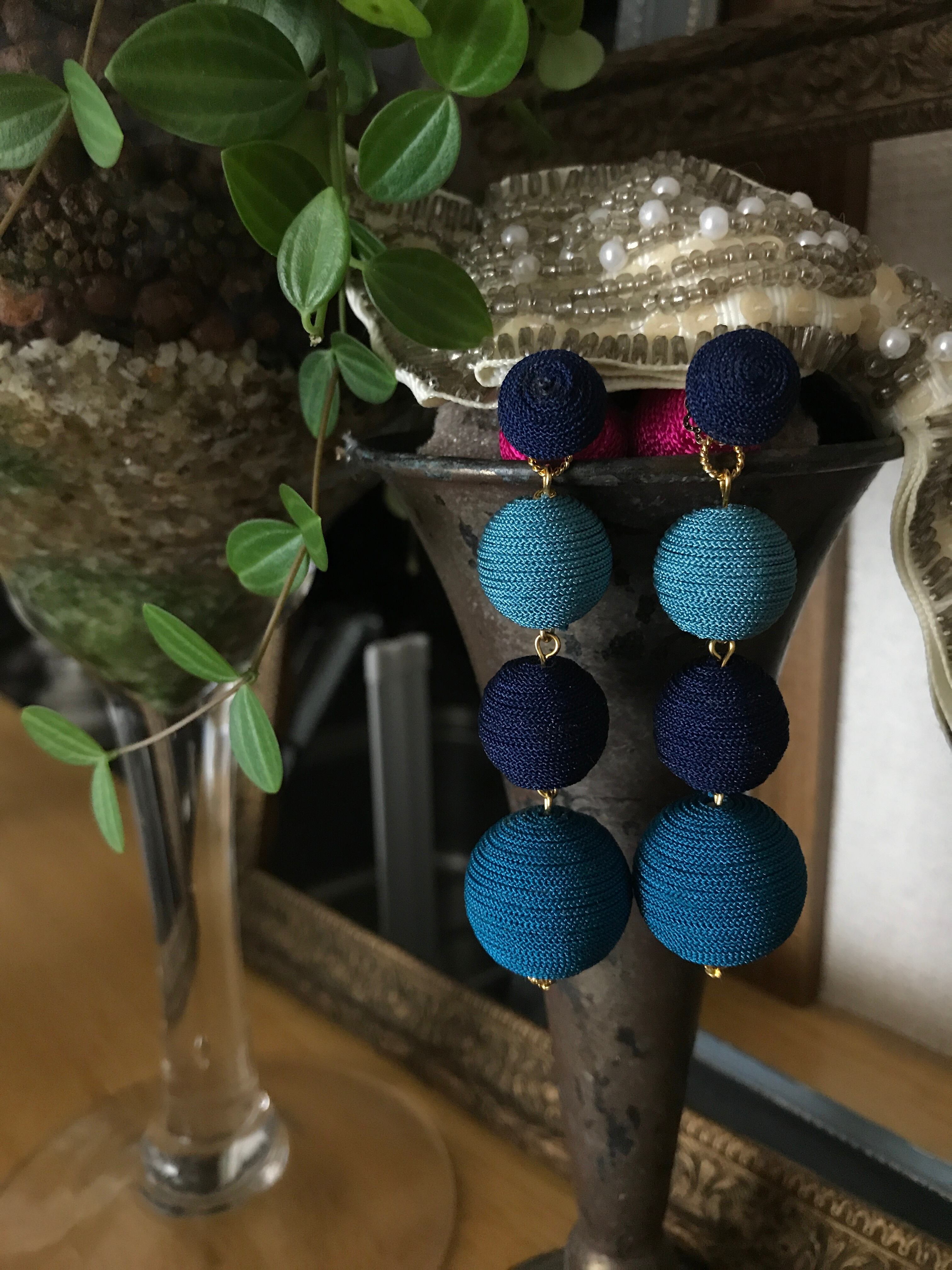 下2つのボンボンは、お花のパーツ部分をピアス部分に通して装着する形になります。