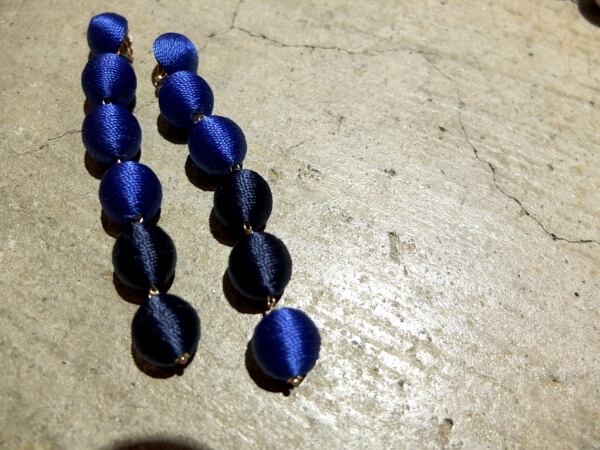 下2つのボンボンは、お花のパーツ部分をピアス部分に通して装着する形になります。