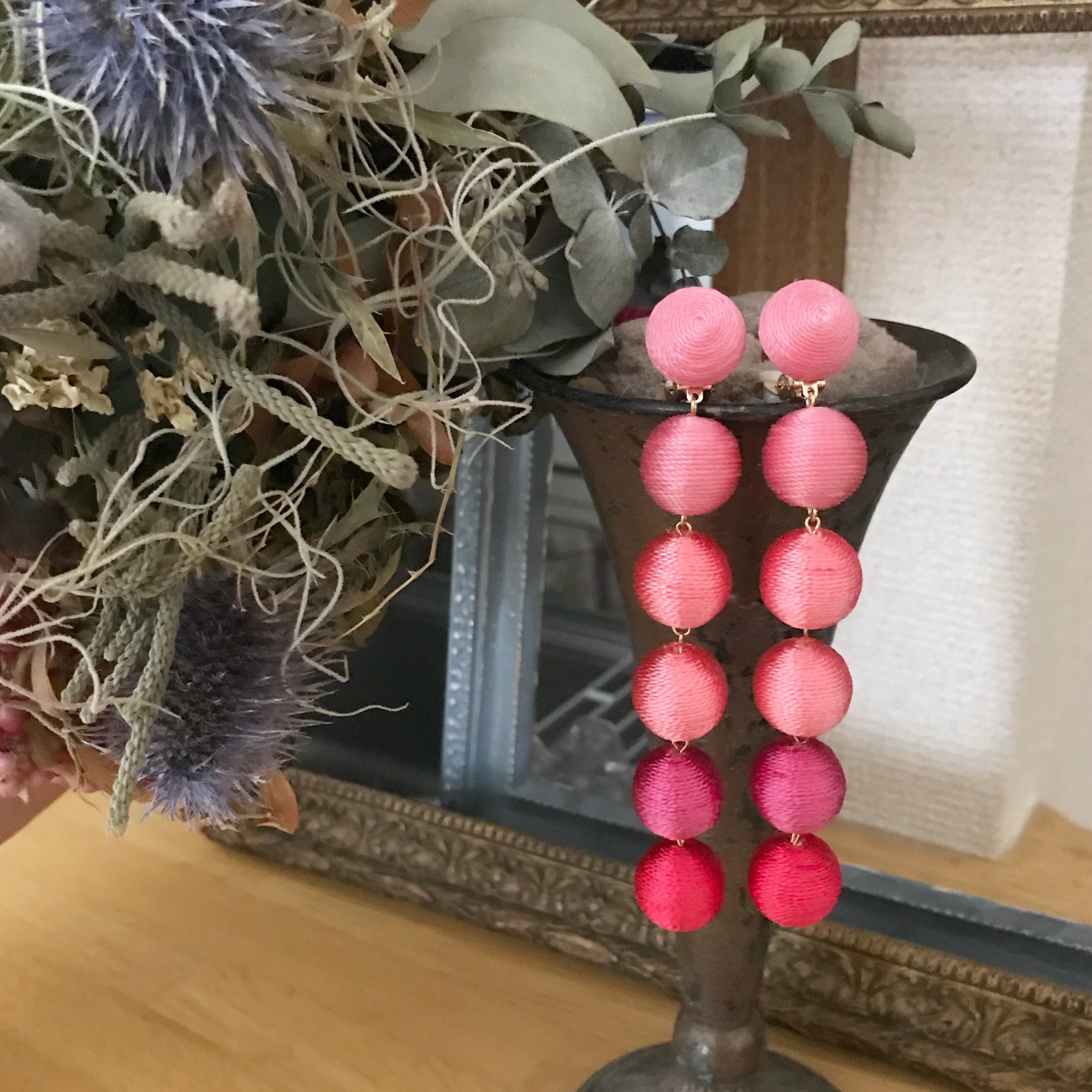 下2つのボンボンは、お花のパーツ部分をピアス部分に通して装着する形になります。